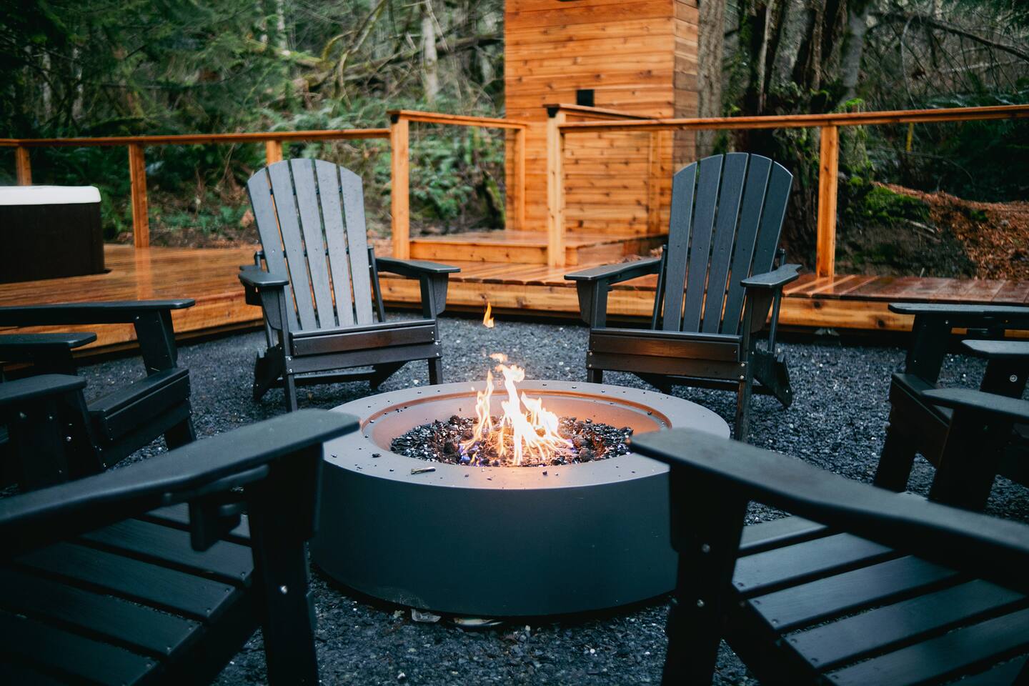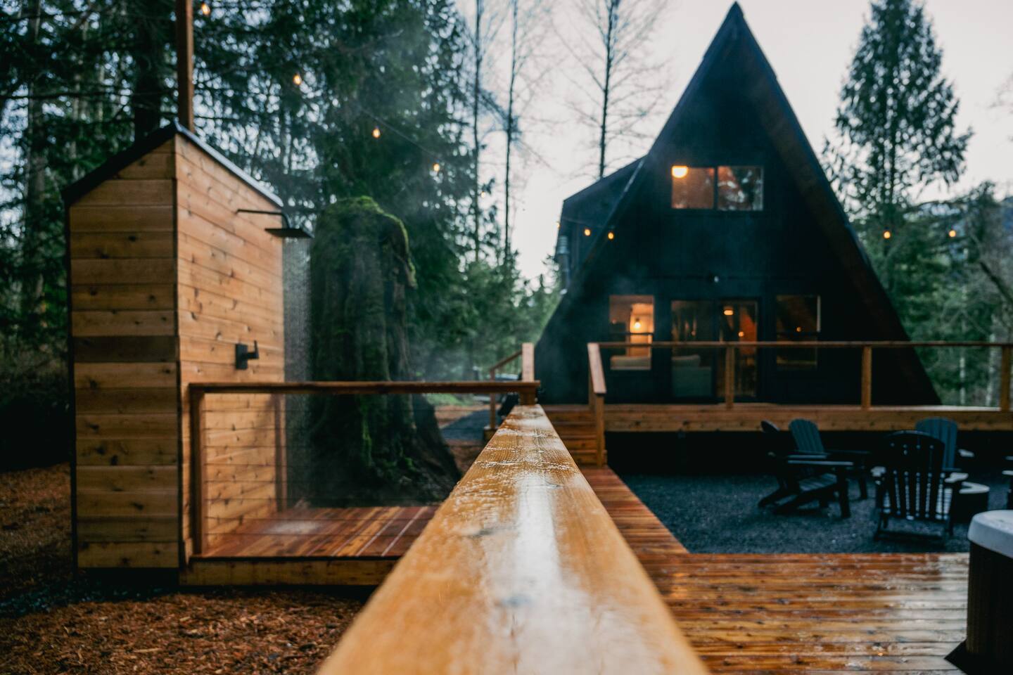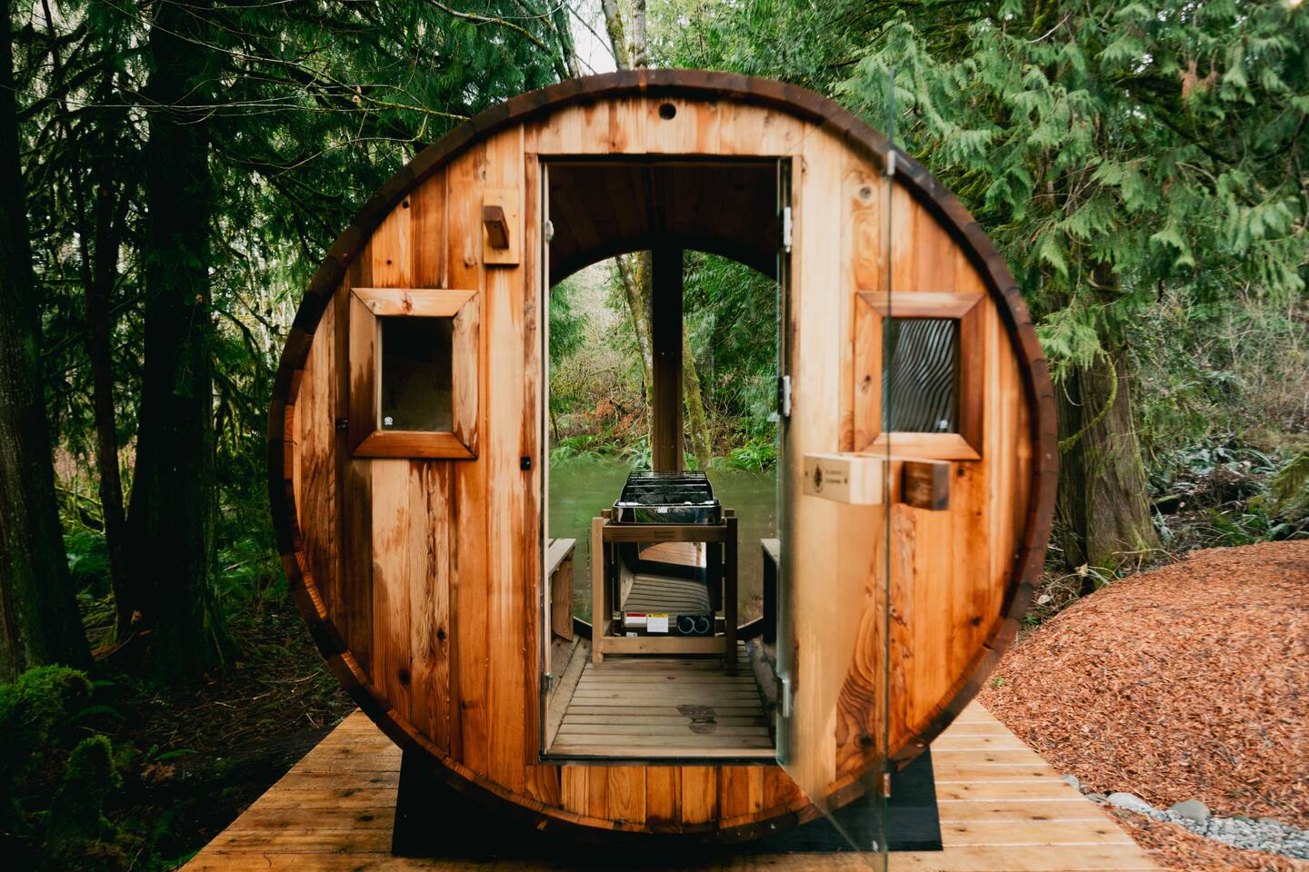 The perfect outdoor getaway featuring a stargazing hot tub, glass barrel sauna, and outdoor shower, all surrounded by forest privacy. • FREE espresso & hot cocoa bar • Fully stocked chef’s kitchen • Spa-inspired bathroom with soaking tub • Family-friendly games, 65” TV & Netflix • High chair & Pack ’n Play included • New king & queen bedrooms • Washer/dryer combo • Gas fireplace & fire pit (no wood needed) • Self check-in anytime • 5 minutes to Mt. Baker Base (or 30 minutes to ski area)
