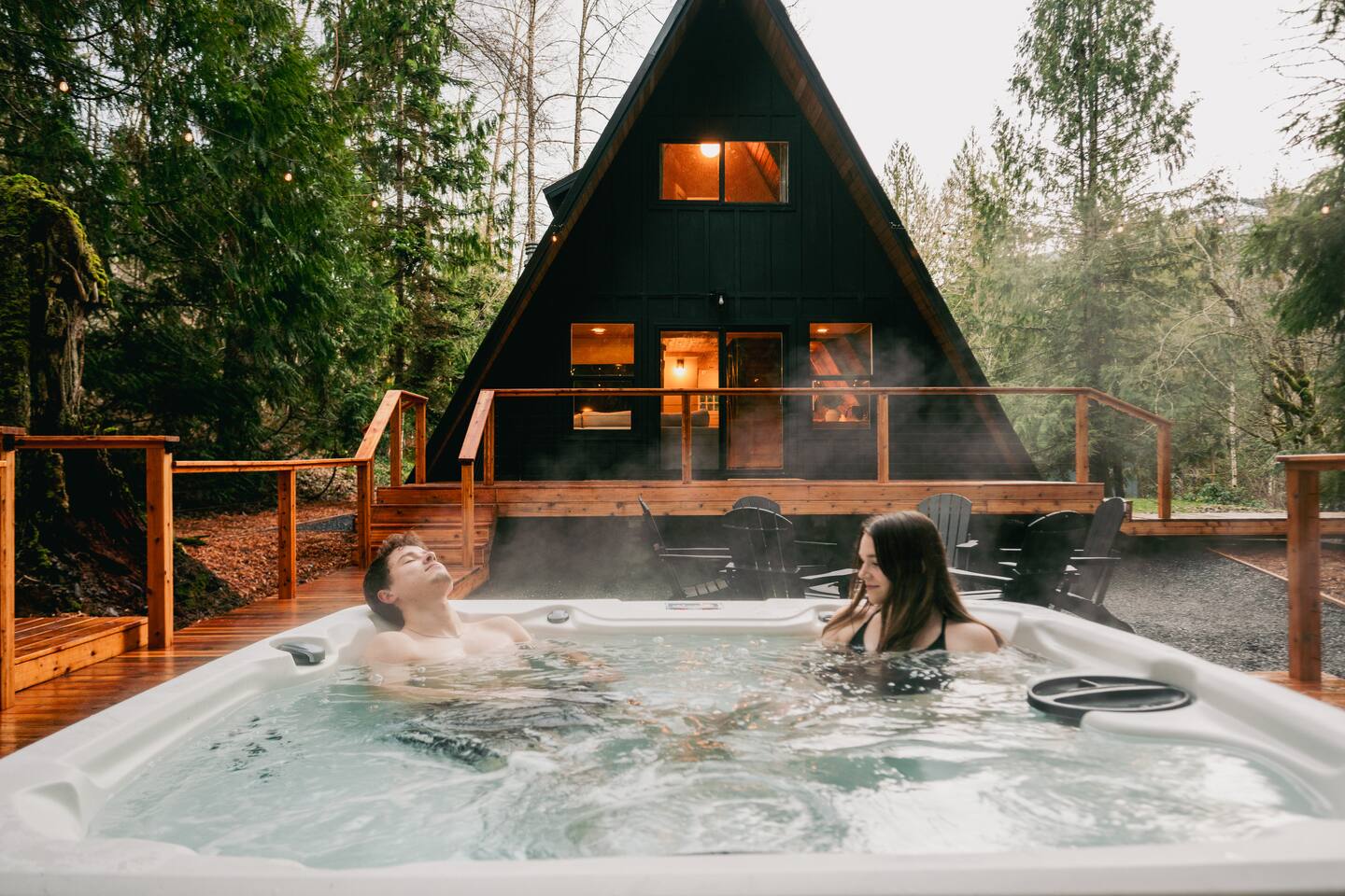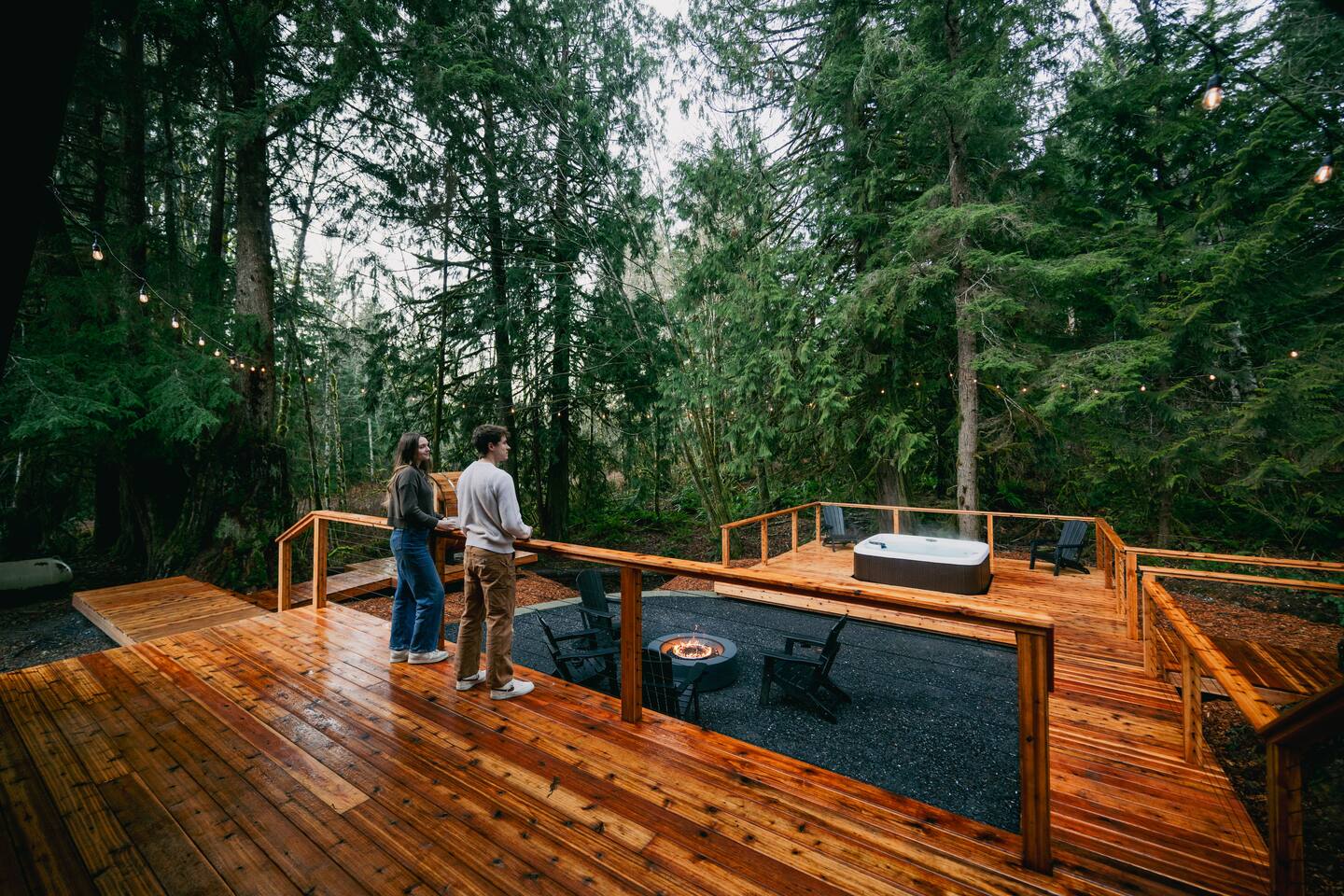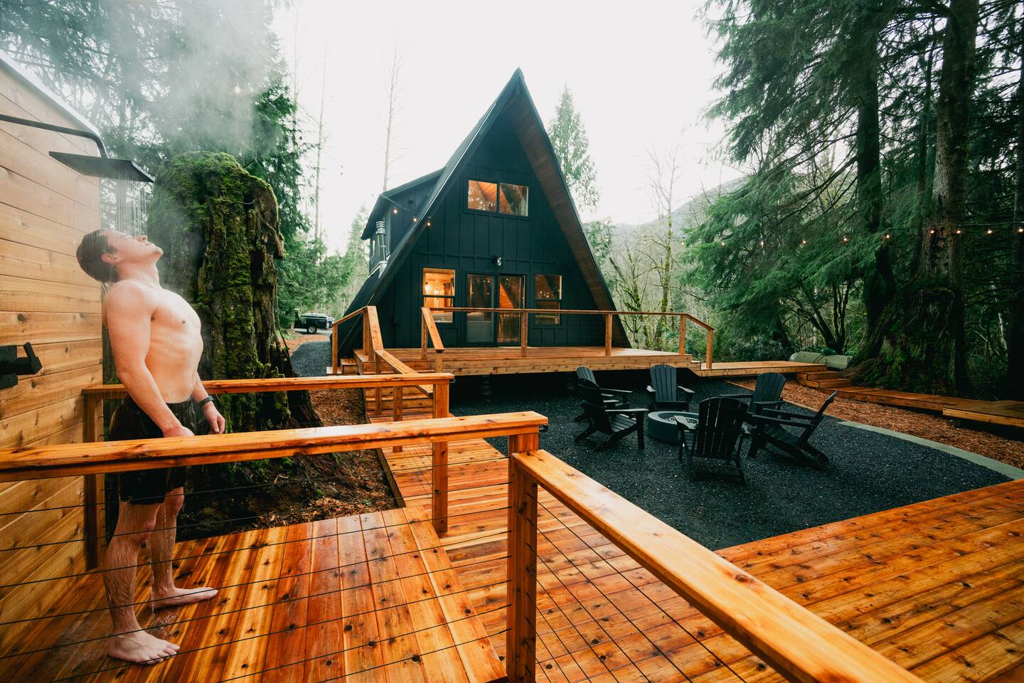 The perfect outdoor getaway featuring a stargazing hot tub, glass barrel sauna, and outdoor shower, all surrounded by forest privacy. • FREE espresso & hot cocoa bar • Fully stocked chef’s kitchen • Spa-inspired bathroom with soaking tub • Family-friendly games, 65” TV & Netflix • High chair & Pack ’n Play included • New king & queen bedrooms • Washer/dryer combo • Gas fireplace & fire pit (no wood needed) • Self check-in anytime • 5 minutes to Mt. Baker Base (or 30 minutes to ski area)