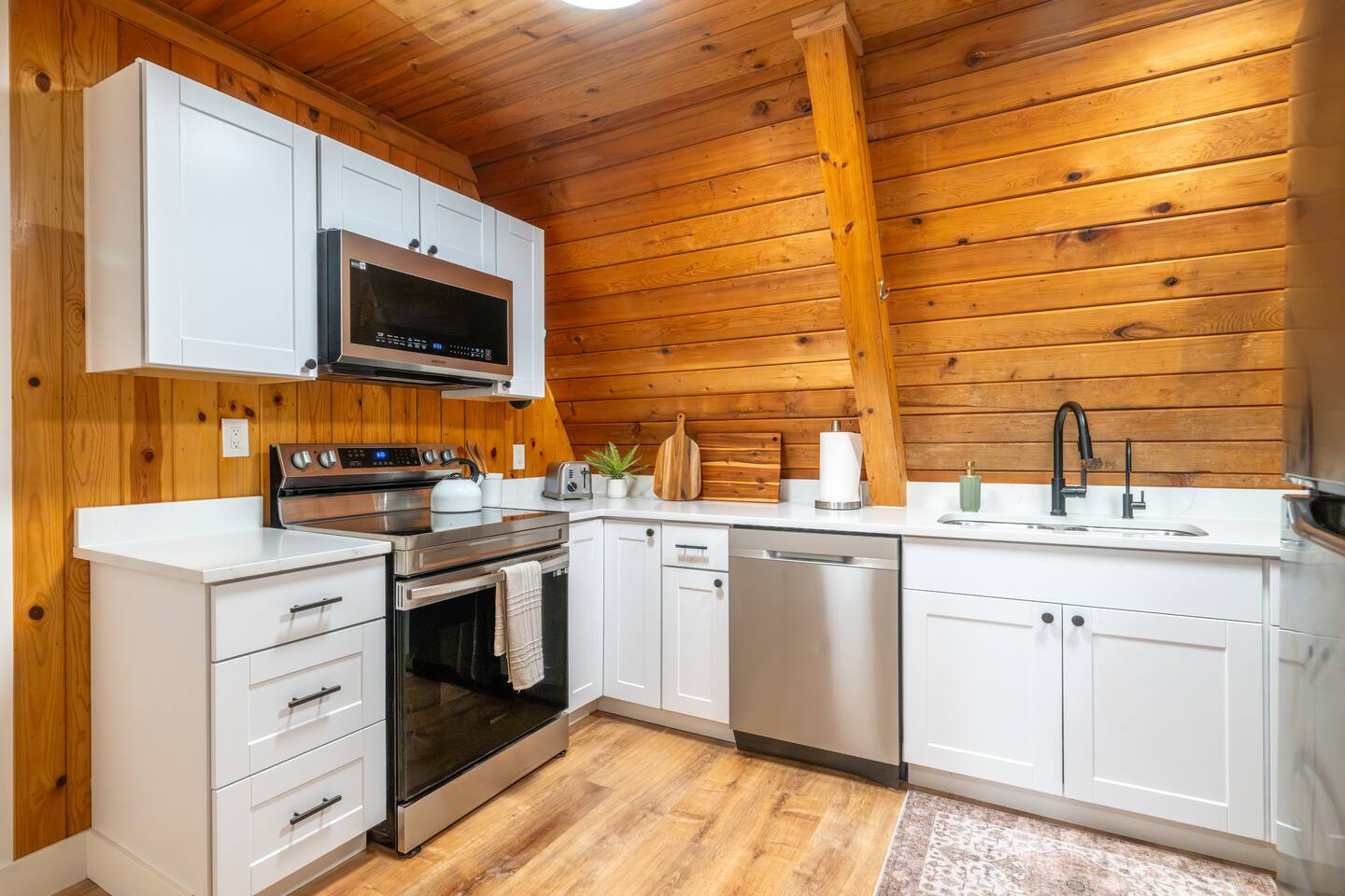 Escape deeper than you thought possible. The Black Cedar isn't just a cabin — it's a full reset. Tucked into the forest with direct access to hidden river trails, a cedar barrel sauna deep in the woods, and a private hot tub under the stars, this place was built for people who want to actually get away. Come tired. Leave restored. Relax & Recharge ✅ Private Hot Tub – soak under the stars after a day on the mountain ✅ Cedar Barrel Sauna – private, deep in the woods, completely off-grid feeling ✅ Free-Standing Soaking Tub – because some nights call for a long, slow unwind ✅ King Bed & Hotel-Quality Furnishings – all new as of Winter 2026 ✅ Cozy Fireplace – warm fire, good book, nowhere to be ✅ Full-Size Tiled Shower + Outdoor Shower – fresh options after the trails or sauna Outdoor Living ✅ Secret River Trails – multiple paths through the forest lead straight to the water ✅ Private Fire Pit – marshmallows, stories, stars (wood included) ✅ Private Lot – surrounded by trees, no neighbors in your face Cook, Dine & Gather ✅ Fully Stocked Kitchen – hearty meals made easy ✅ Large Dining Table – built for big dinners and late-night games ✅ Complimentary Espresso, Coffee, Tea & Hot Cocoa – mornings done right Unplug… or Don't ✅ 65" Smart TV + Free Netflix ✅ 300+ Mbps Xfinity WiFi – fast enough for anyone who has to work ✅ Full-Size Washer & Dryer – pack light, stay longer Extras ✅ On-Site Snack Shack (paid) – snacks without leaving the property ✅ Free Parking for up to 6 Vehicles ✅ Fully Renovated 2026 – and honestly, there's even more to discover when you get here