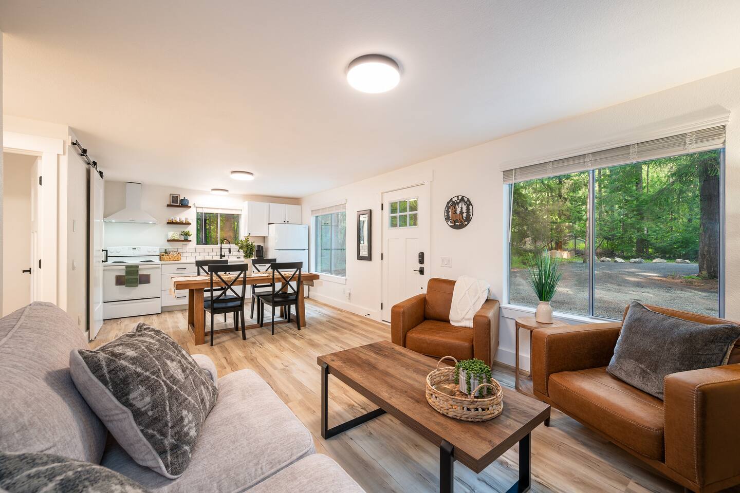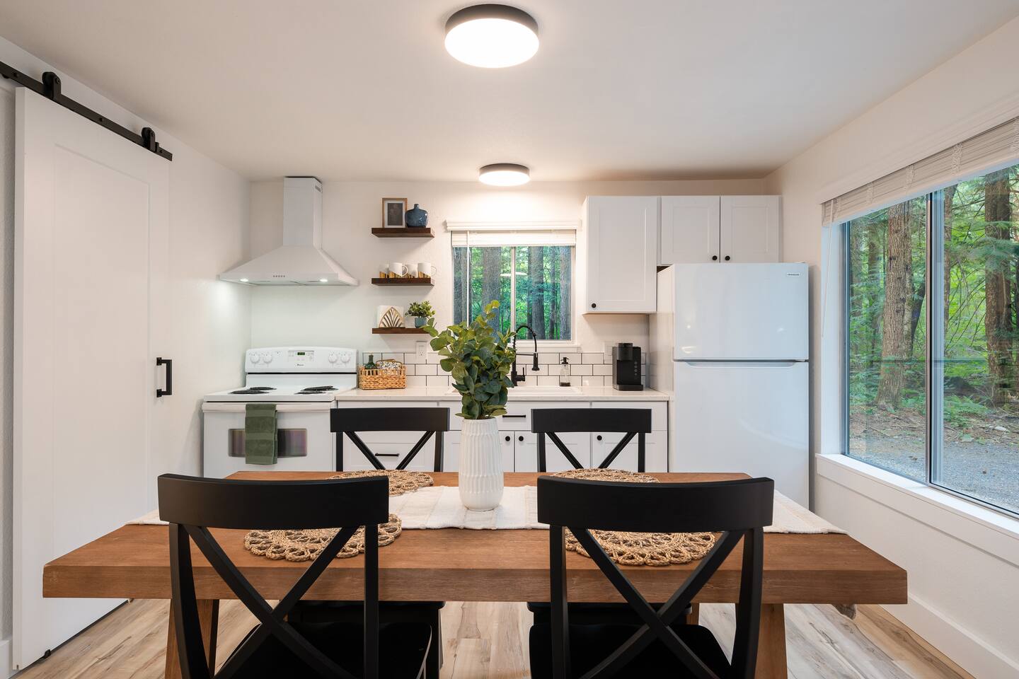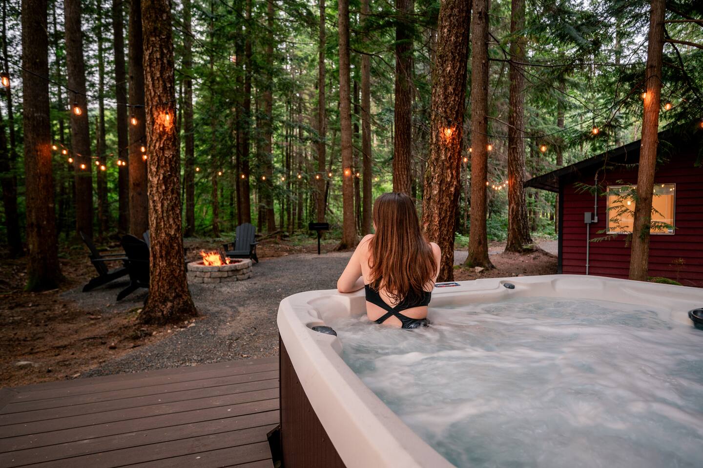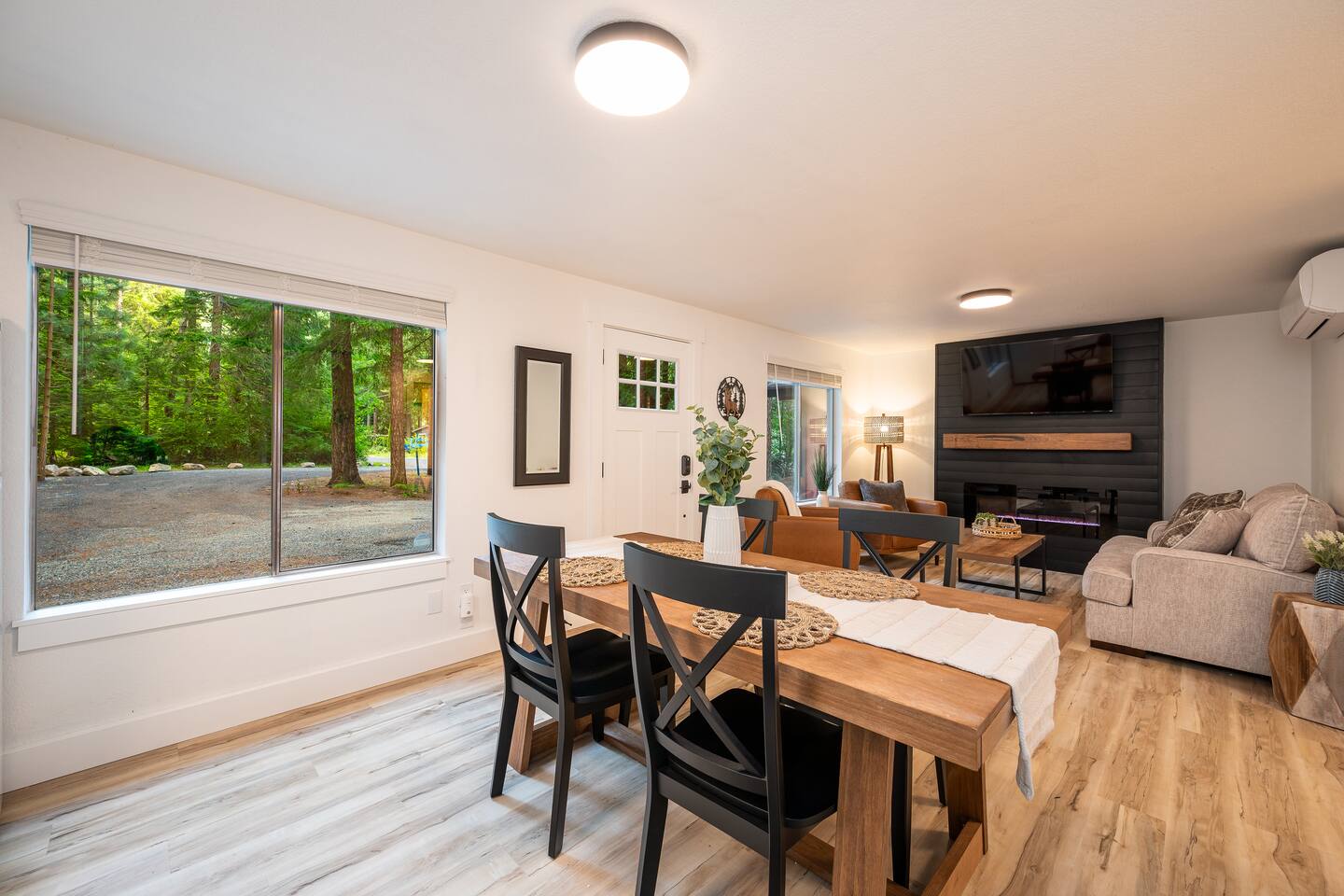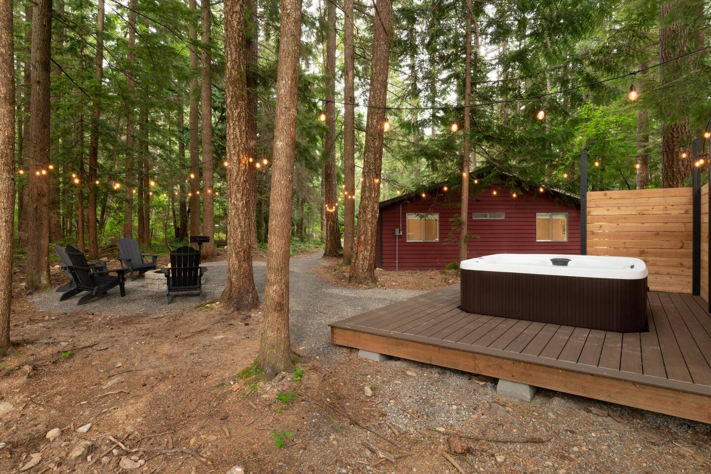 Escape to our peaceful red cabin near Mt. Baker, a renovated retreat perfect for disconnecting. After a day of skiing or hiking, unwind in the private hot tub under the stars or cozy up by the fireplace. This haven in the woods comfortably fits small groups and families seeking a magical mountain getaway. Features fast WiFi, a full kitchen, and A/C.