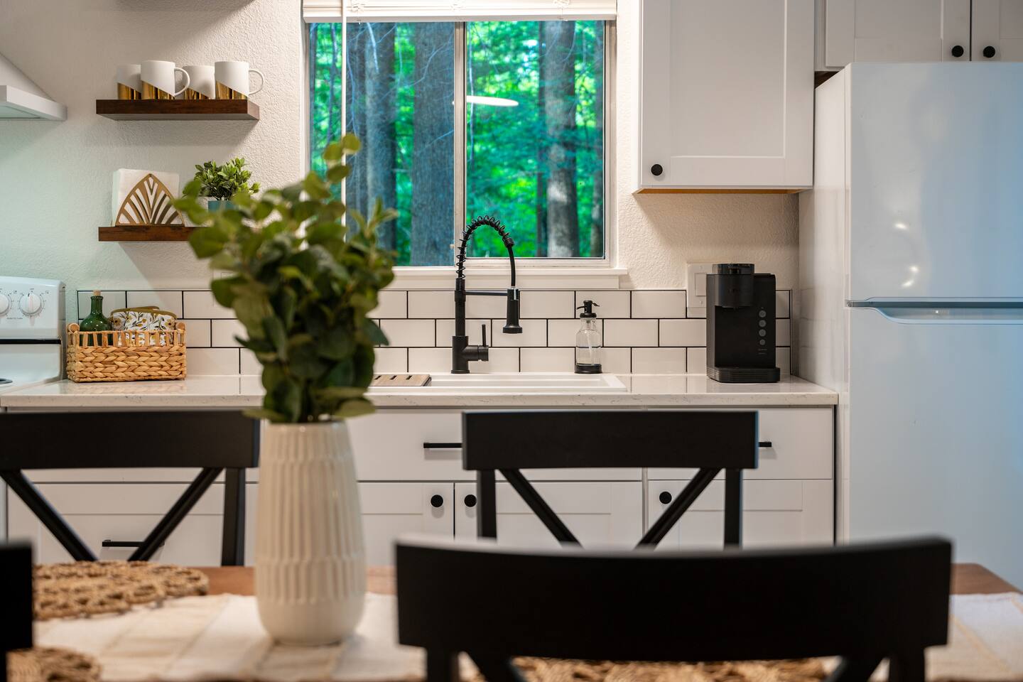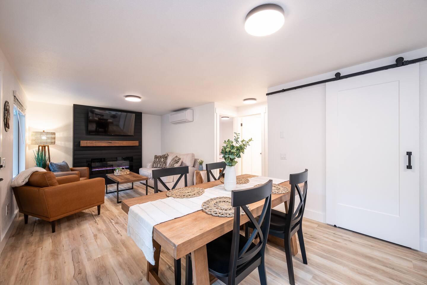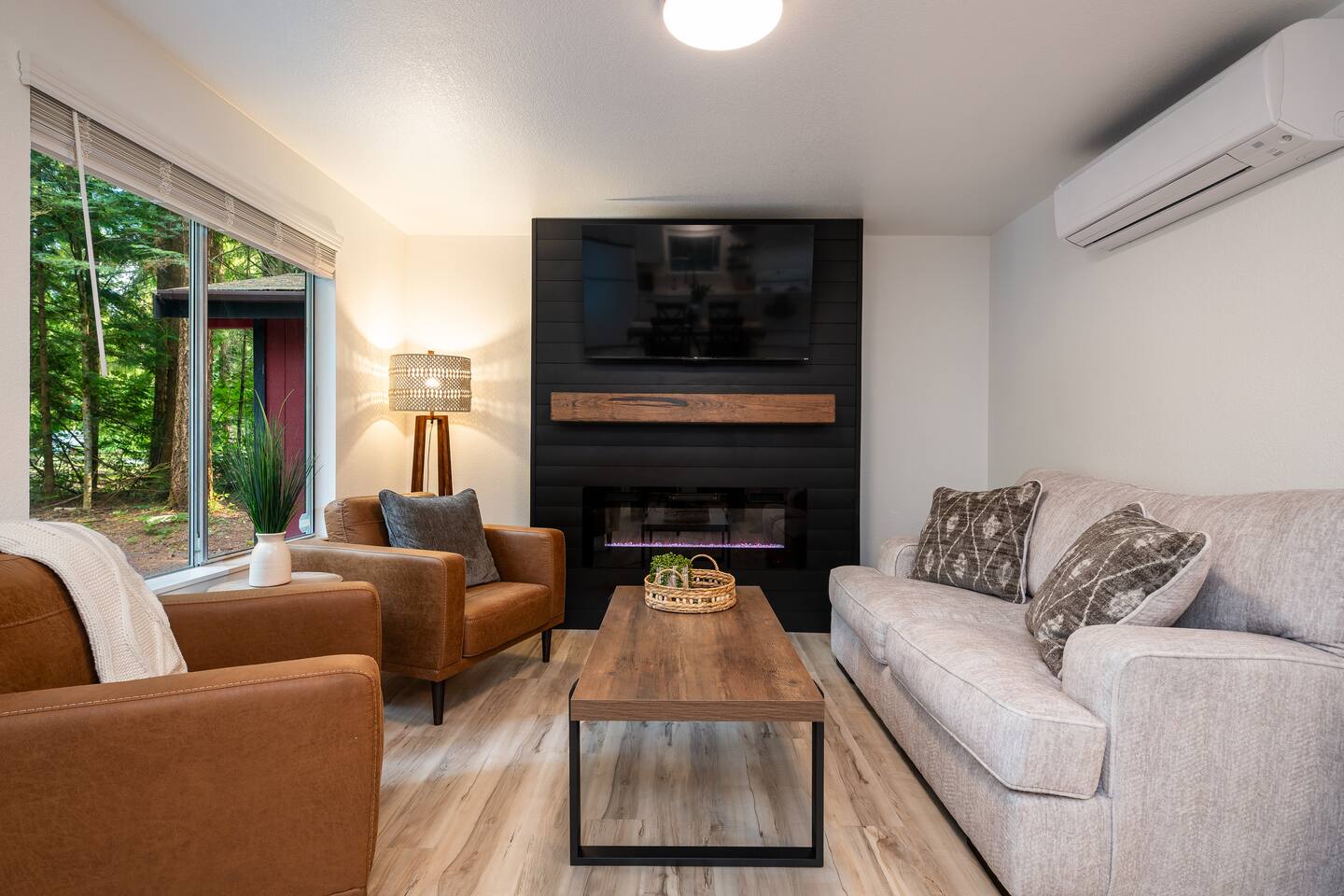 Relax & Recharge ✅ Brand-New Private Hot Tub – soak under the stars after a day on the mountain ✅ Hotel-Quality Beds & Furniture – all new as of Summer 2023 for dreamy sleep ✅ Cozy Fireplace – unwind with a warm fire and a good book ✅ Mini-Split A/C & Heat – stay perfectly comfortable year-round ✅ Extra Towels Provided – plenty for hot tubbing and freshen-ups ✅ Full-Size Washer & Dryer – pack light, stay longer Unplug… or Don't ✅ 55" Smart TV + Free Netflix – perfect for movie nights after the slopes ✅ Fast Xfinity WiFi (100 Mbps) – Zoom, stream, or scroll with no lag Cook, Dine & Gather ✅ Fully Stocked Kitchen – everything you need to whip up hearty meals ✅ Large Dining Table – ideal for big dinners or epic game nights ✅ Charcoal BBQ Grill – fire it up for a classic cookout under the trees (bring your own charcoal) ✅ Complimentary Coffee & Tea – start your mornings right Outdoor Living ✅ Private Fire Pit – roast marshmallows & share stories under the stars (bring your own wood) ✅ Private Corner Lot – quiet, peaceful, and surrounded by forest ✅ Secret Trail to Red Mountain – direct access just steps from your door Extras That Matter ✅ Free Onsite Parking – easy access for up to 3 vehicles ✅ Fully Renovated in 2023 – fresh, clean, and modern throughout